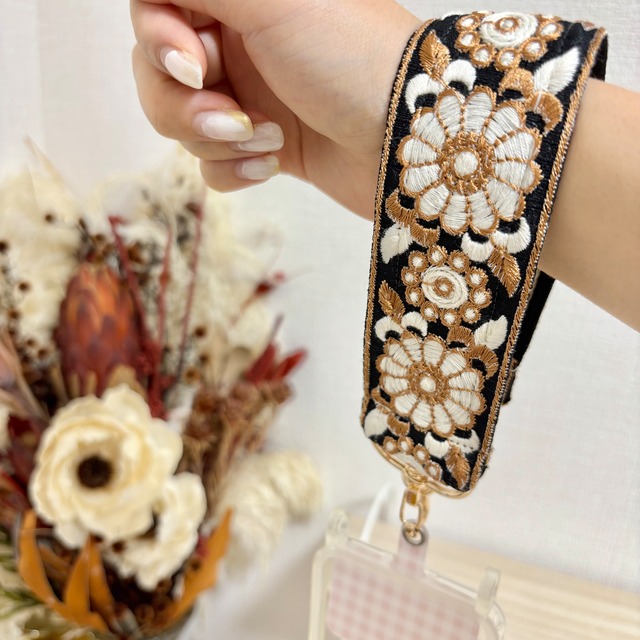 スマホやトートバッグなどの持ち手に着脱可能なハンドストラップです! オプションとして、+100円で透明なストラップホルダーを一緒にご購入いただけます◎ 太さ:約2cm 長さ:約34cm(金具部分含む)