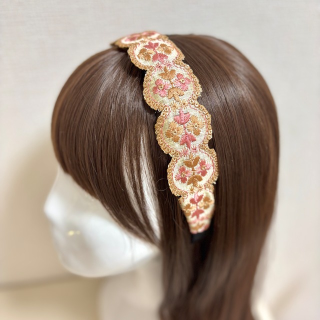 インド刺繍リボンを使って製作した 丸型が可愛いカチューシャです♡ サイズ:フリー 幅:約4cm(一番太い部分)
