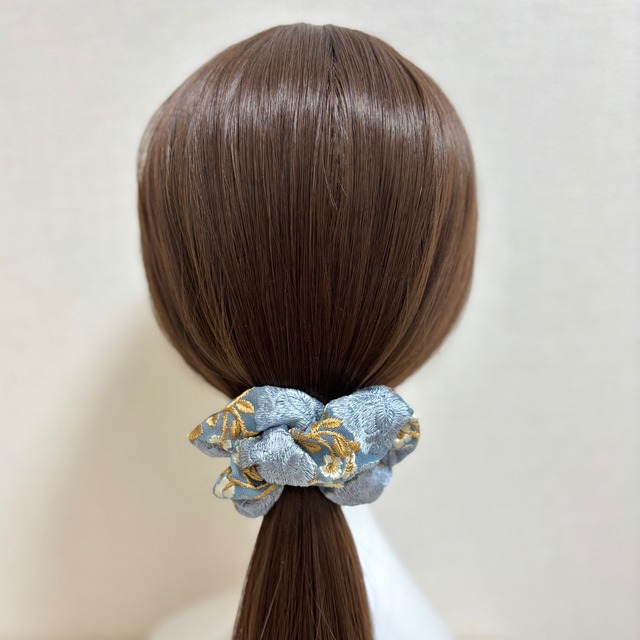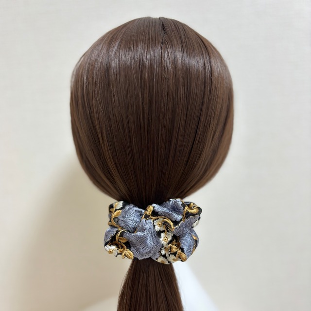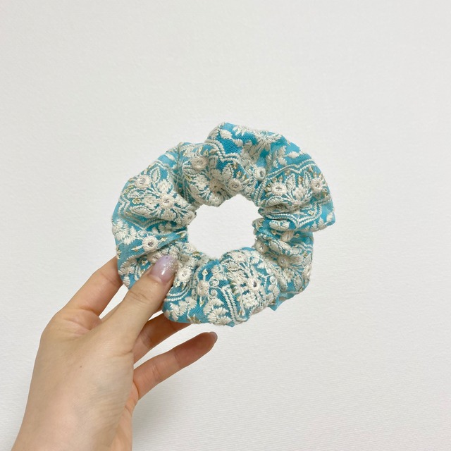 インド刺繍リボンを使った 大きくて存在感のある豪華なシュシュです! ヘアアクセサリーとしてだけでなく ブレスレットとしても活躍出来そうです♡