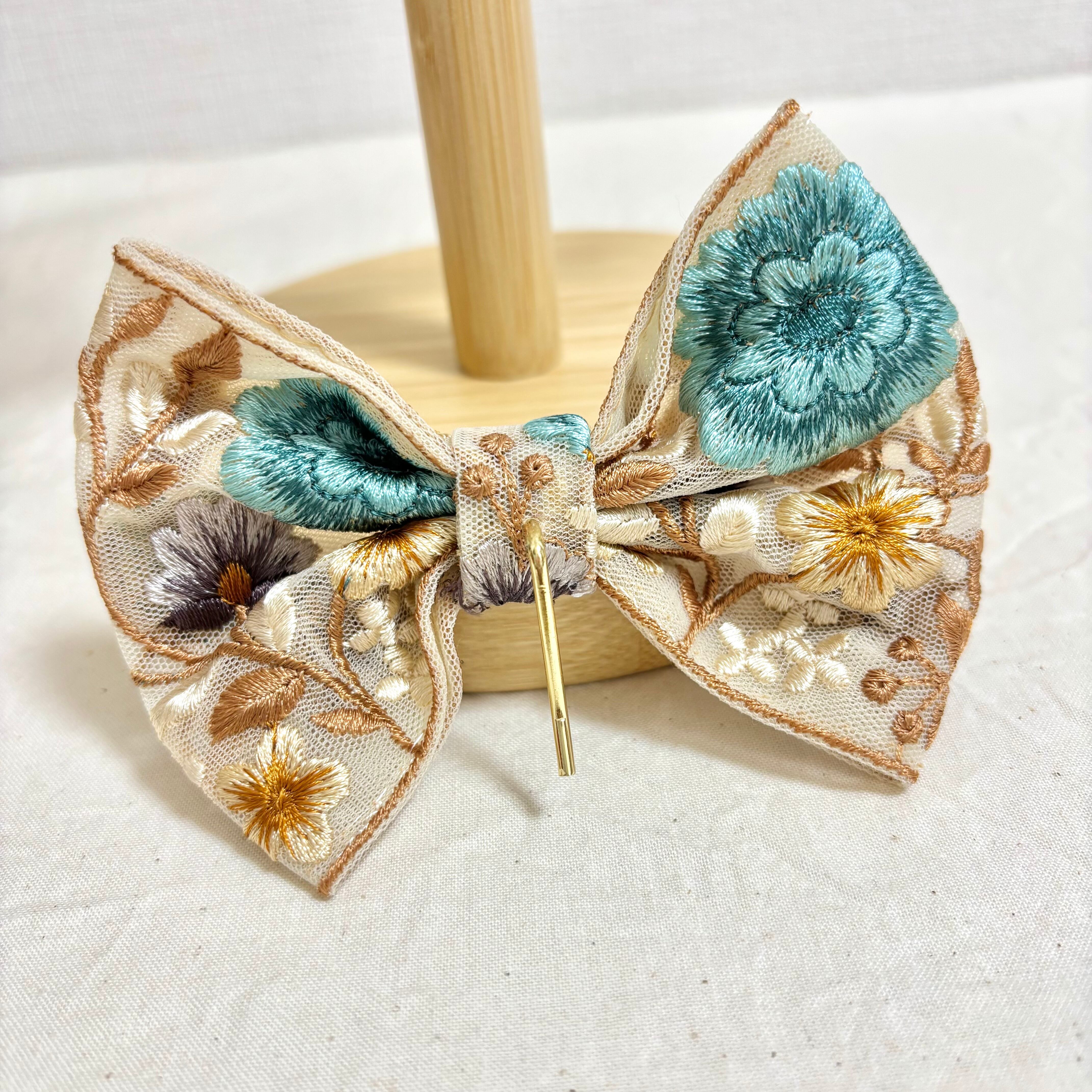 インド刺繍リボンを使ったリボン型のヘアアクセサリーです。