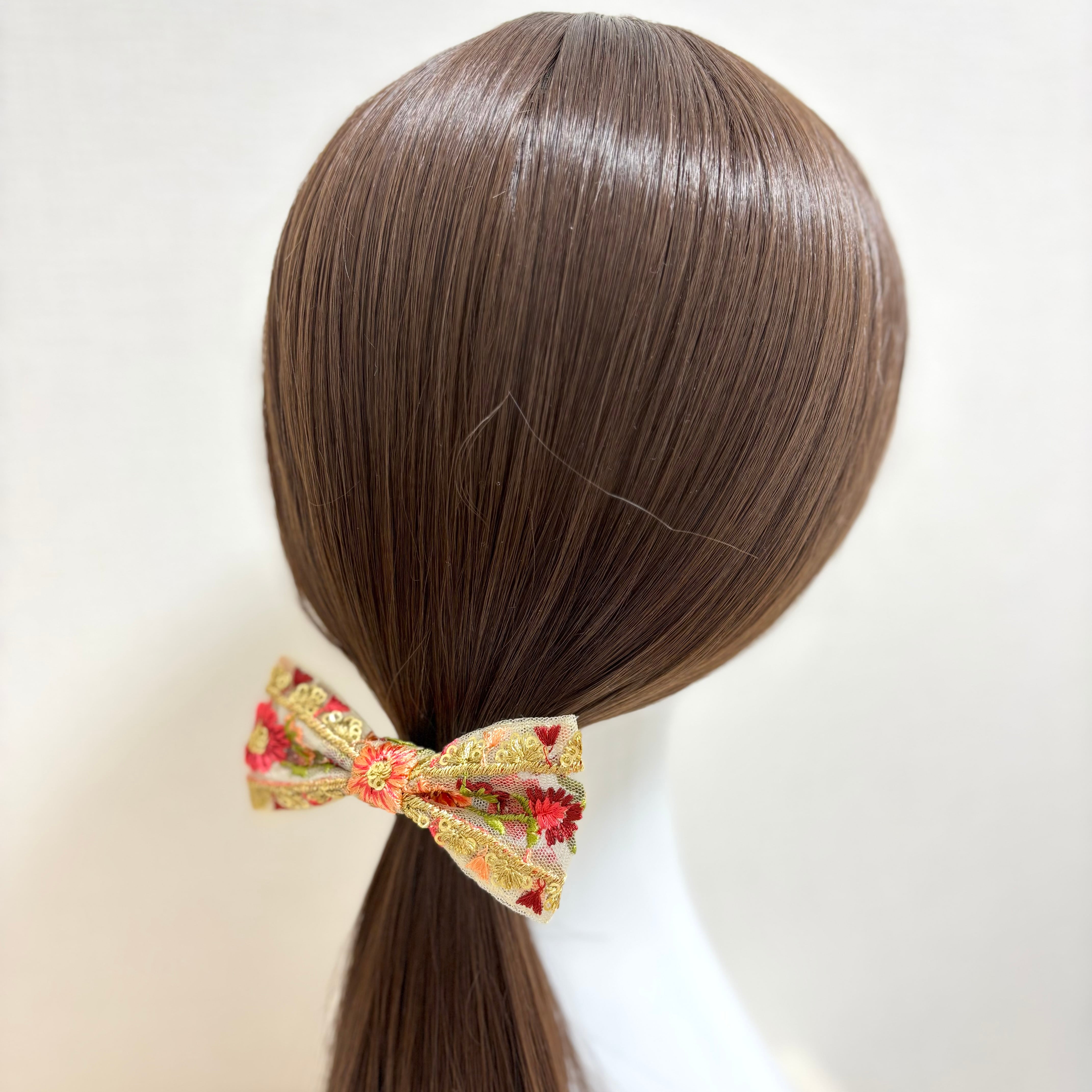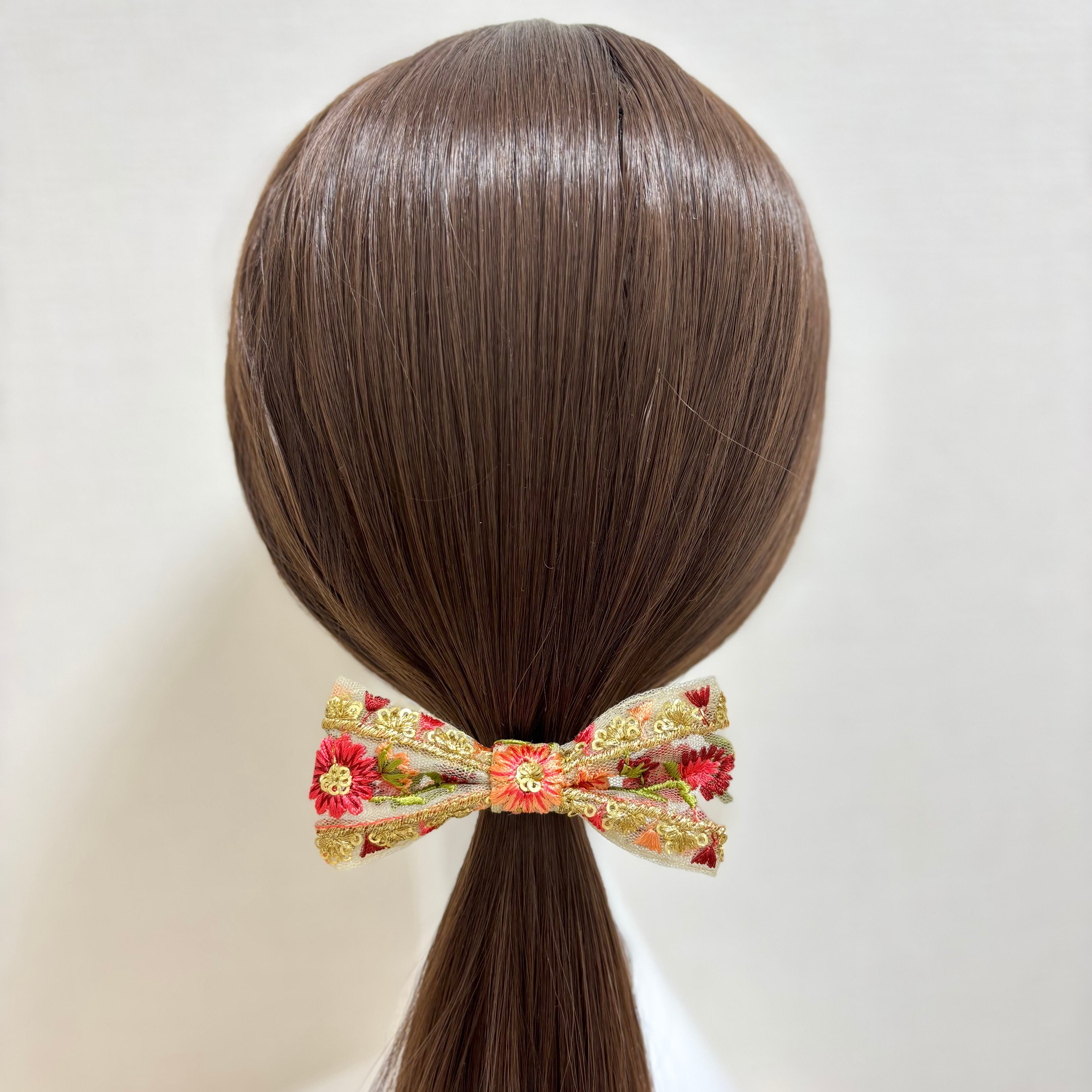 インド刺繍リボンを使ったリボン型のヘアアクセサリーです。