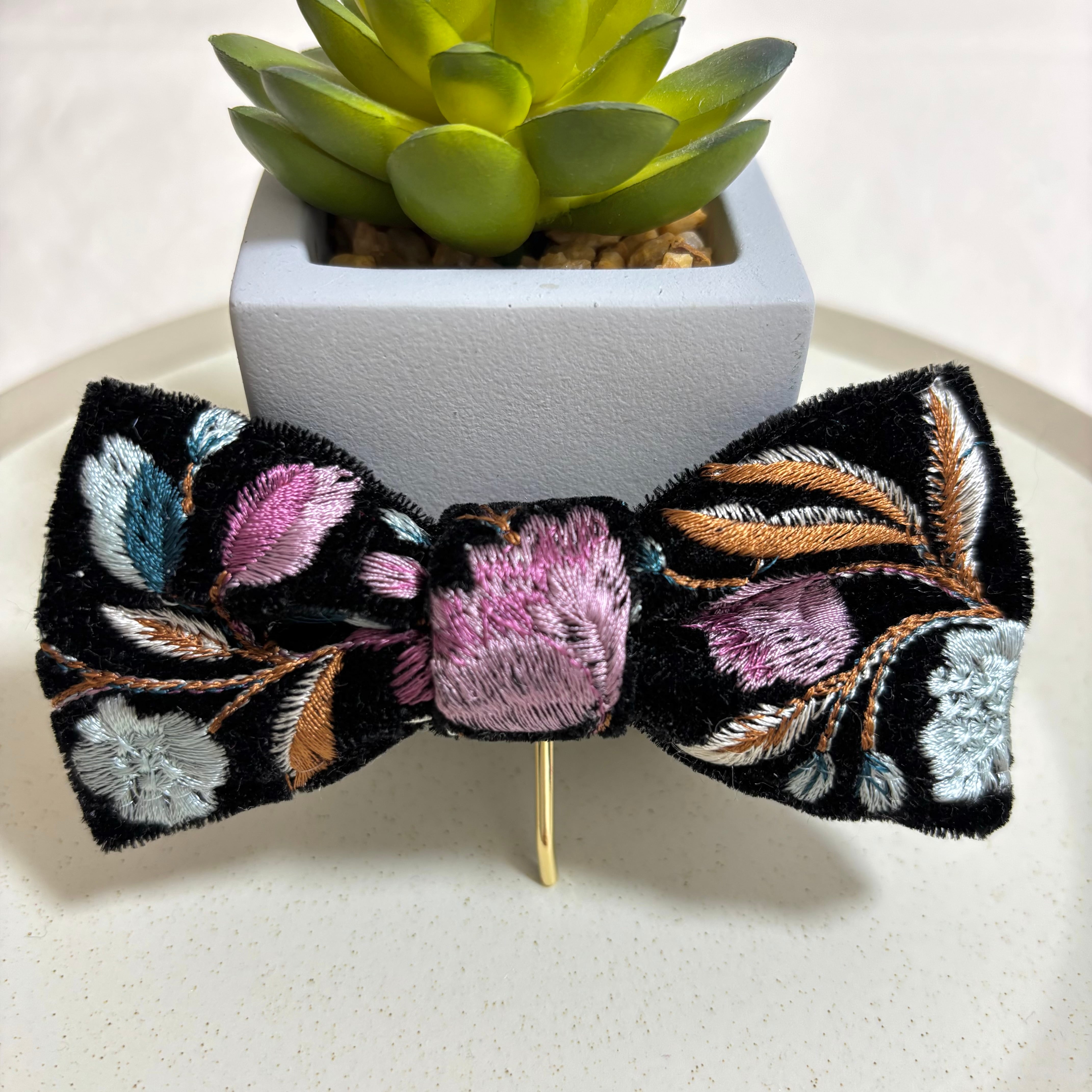 インド刺繍リボンを使ったリボン型のヘアアクセサリーです。