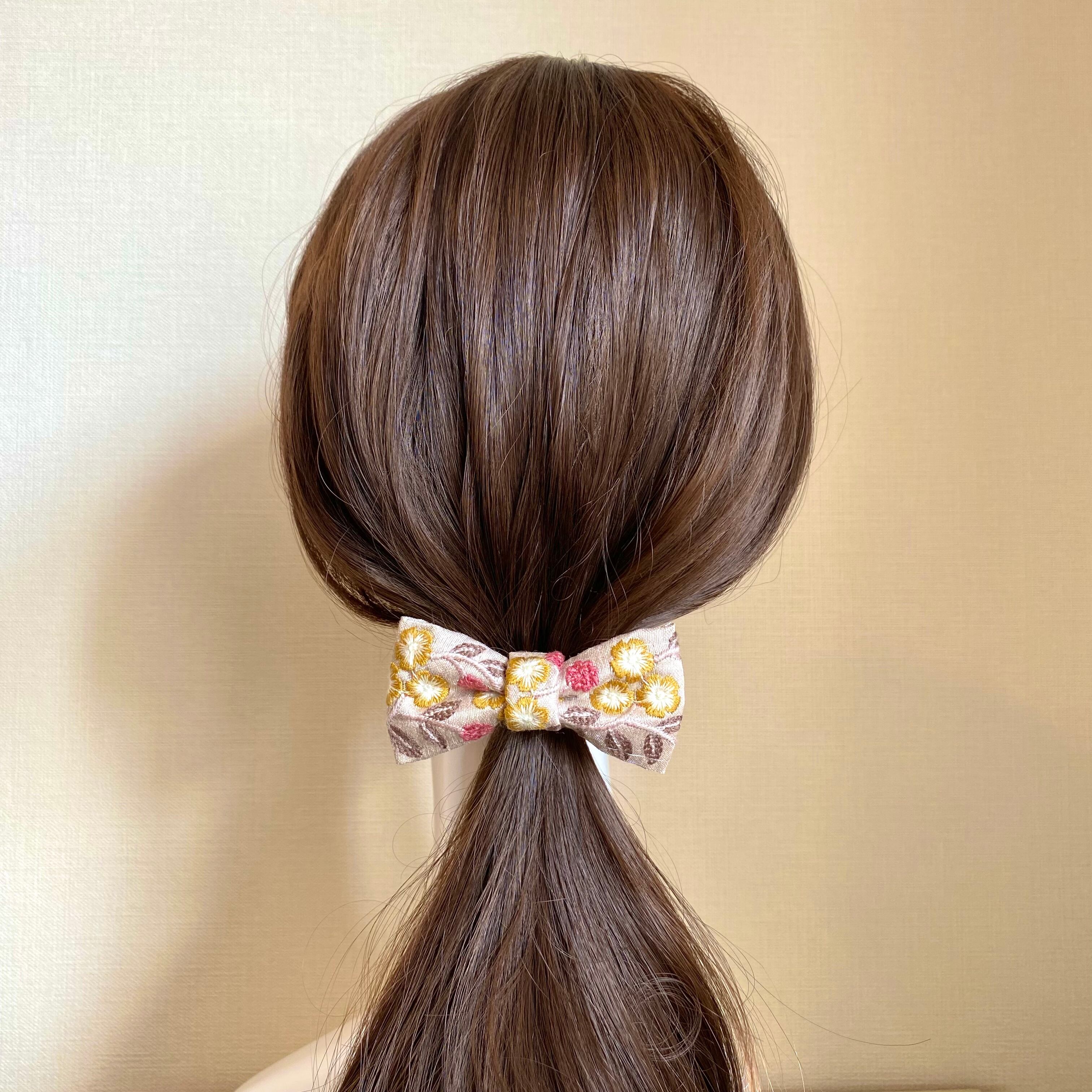 インド刺繍リボンを使ったリボン型のヘアアクセサリーです。