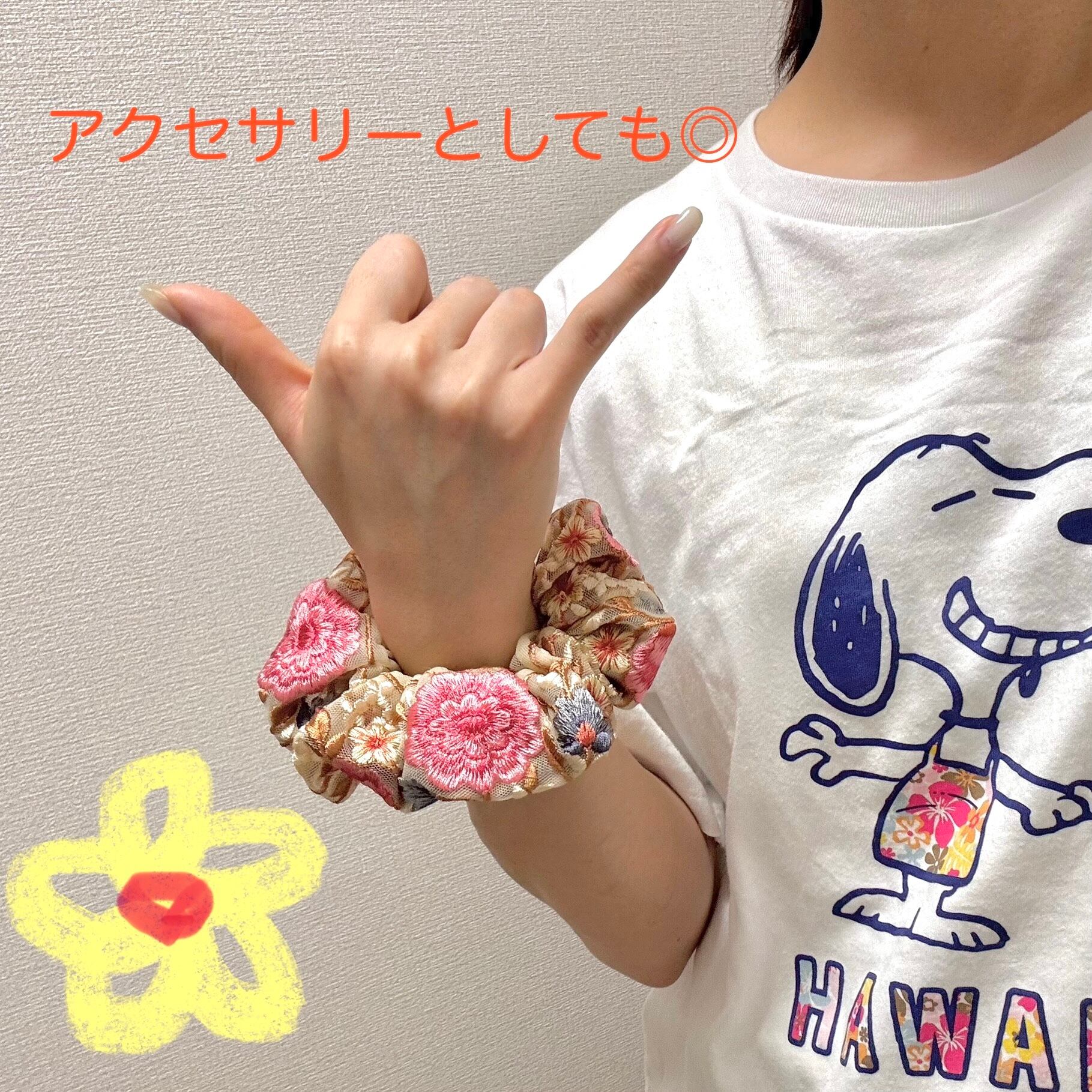 インド刺繍リボンを使った 大きくて存在感のある豪華なシュシュです! ヘアアクセサリーとしてだけでなく ブレスレットとしても活躍出来そうです♡