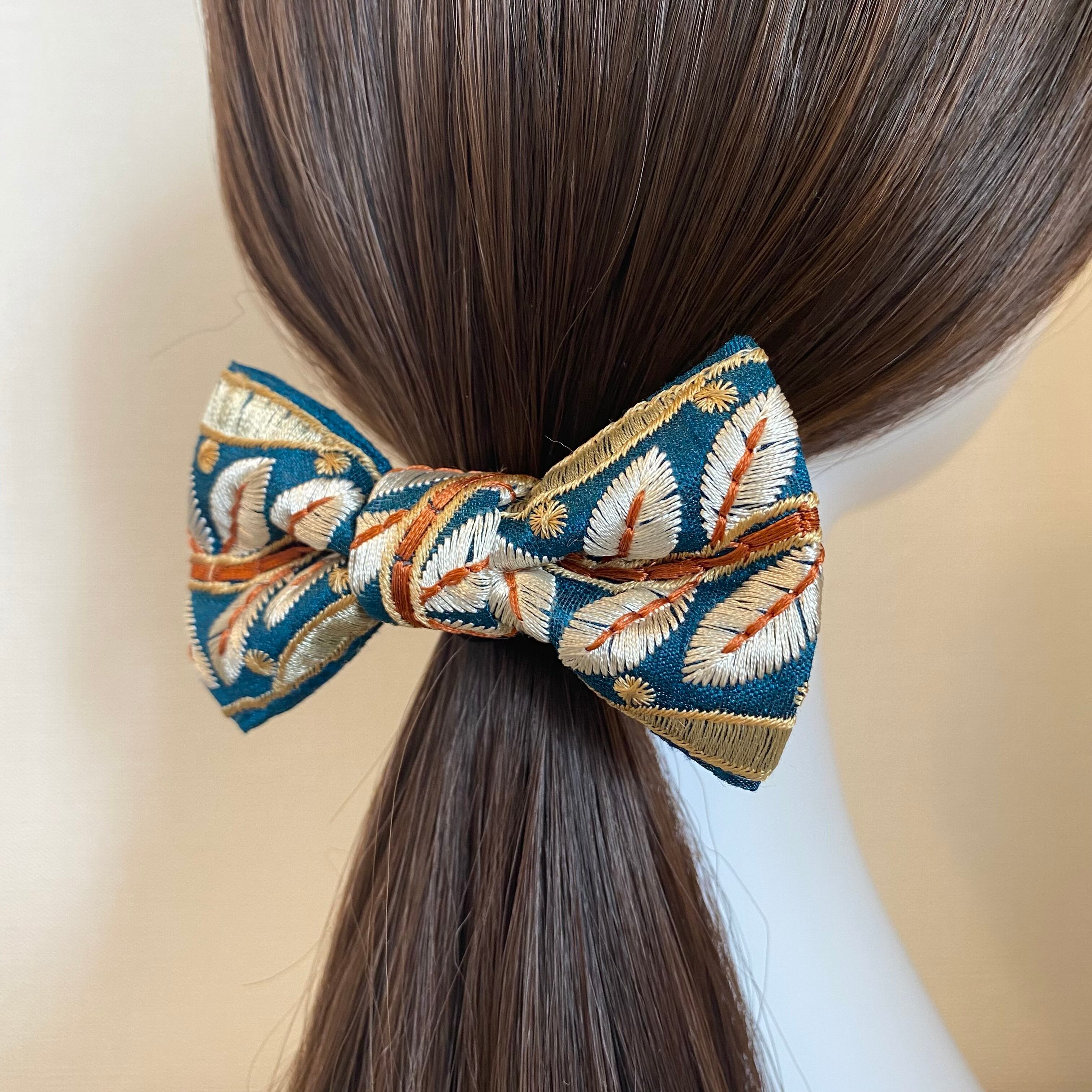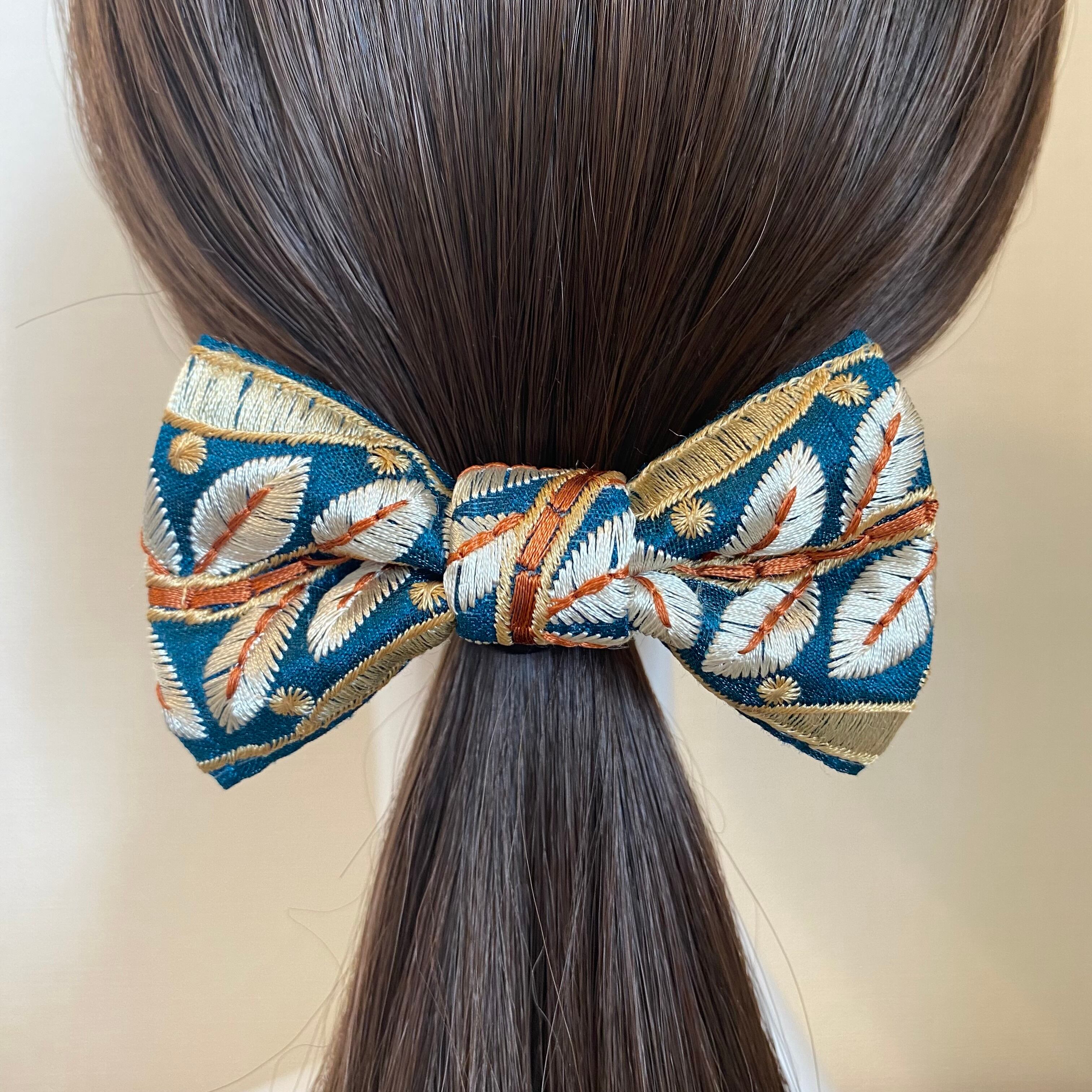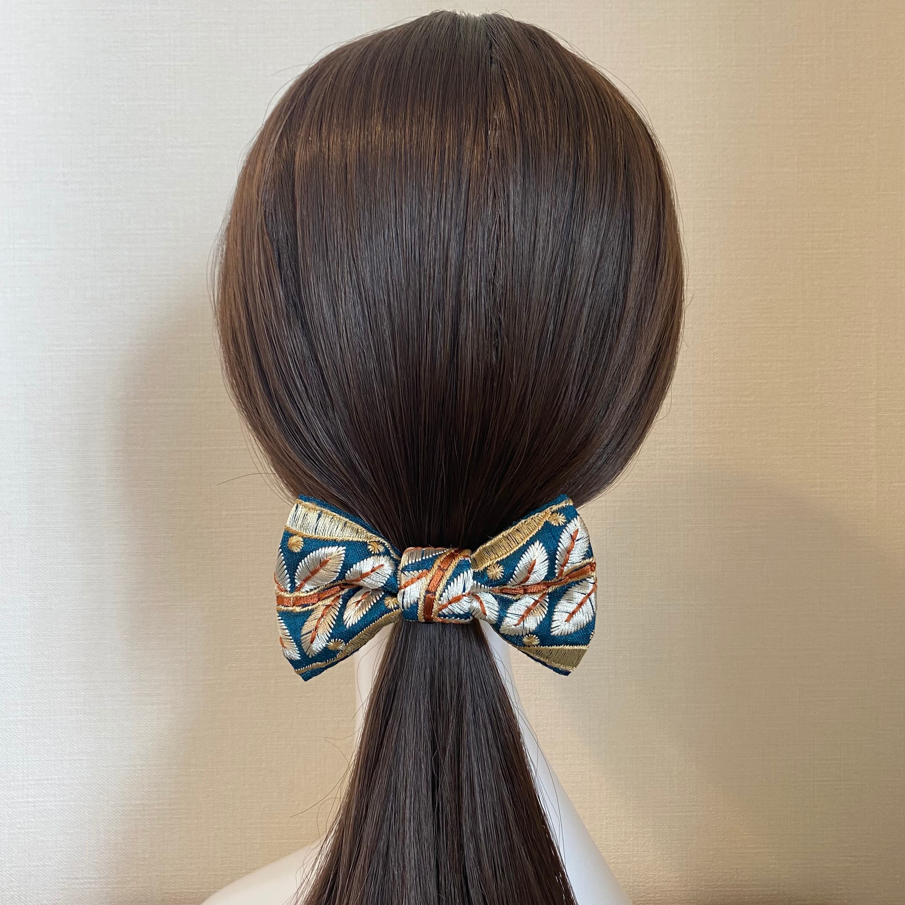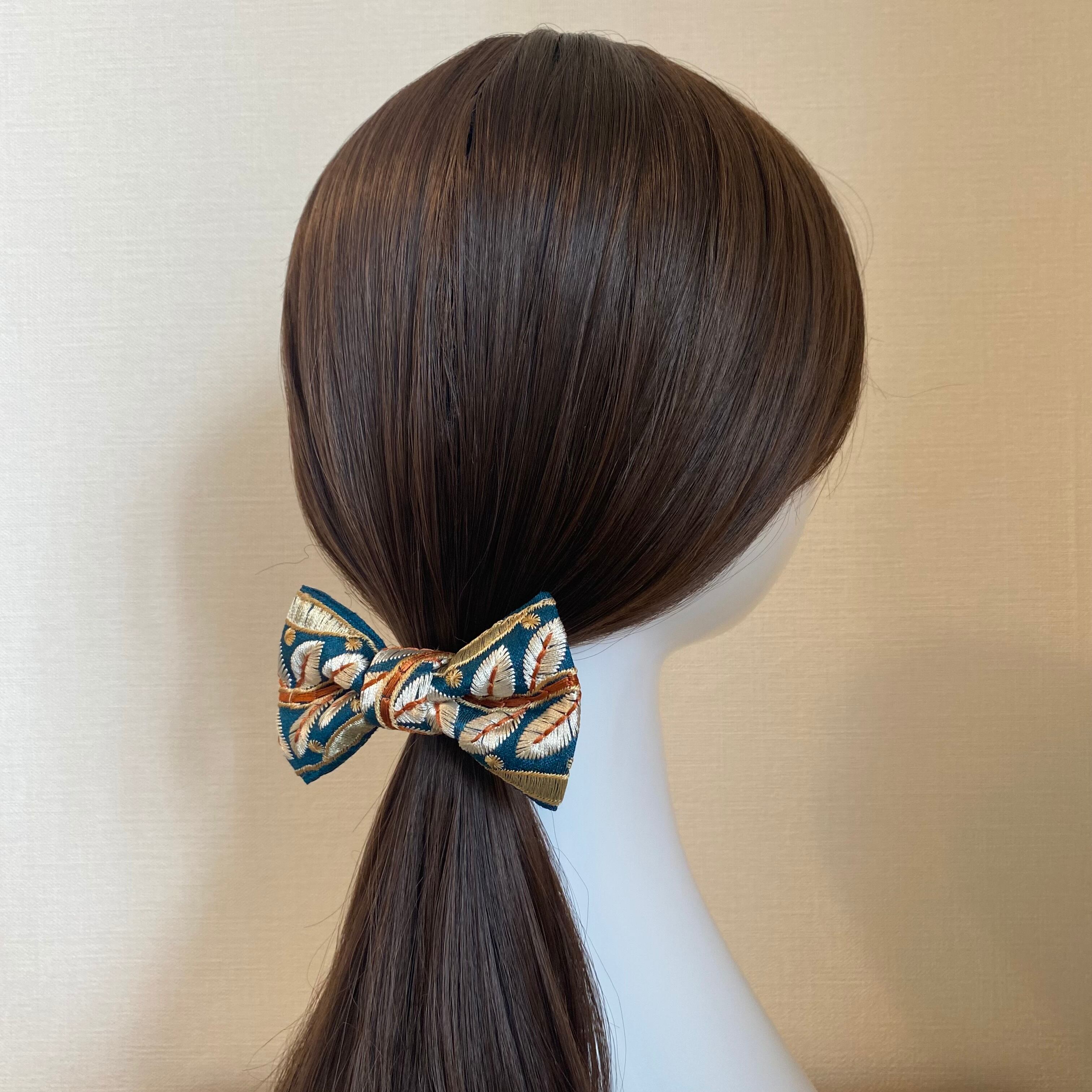 インド刺繍リボンを使ったリボン型のヘアアクセサリーです。