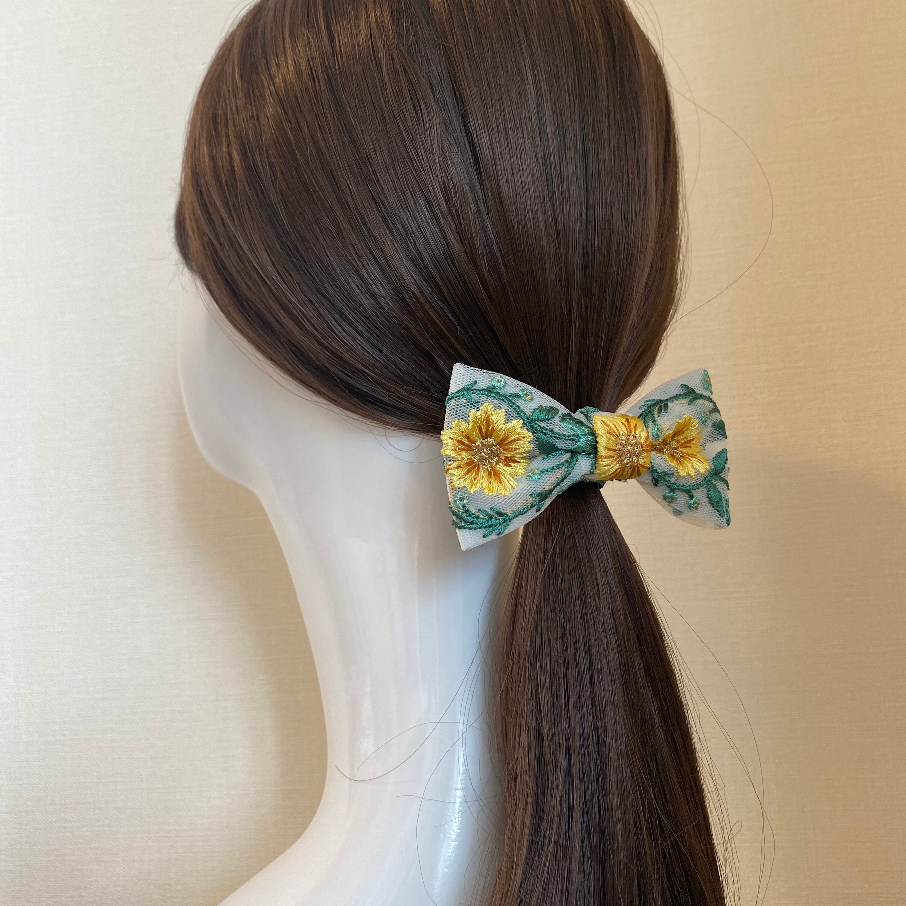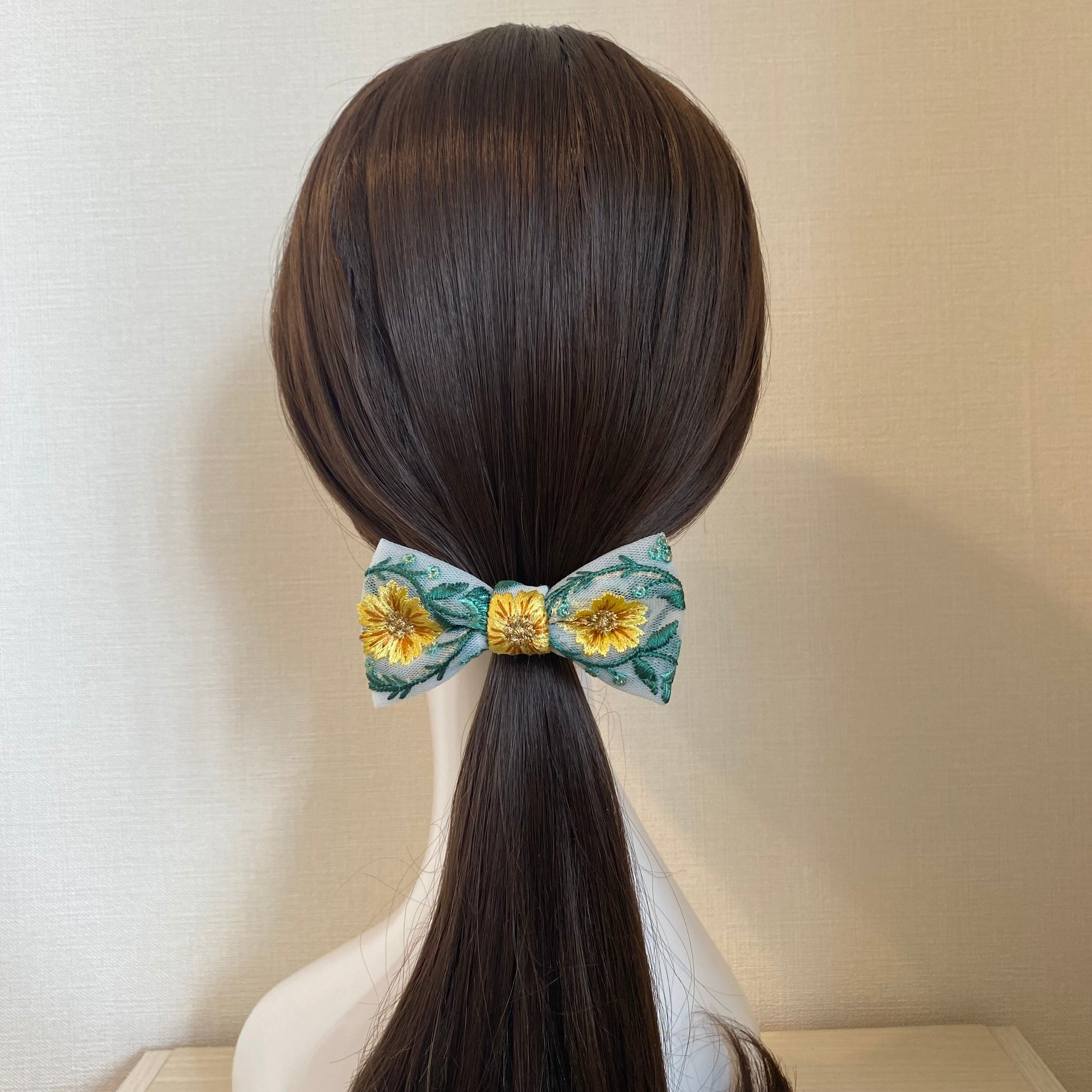 インド刺繍リボンを使ったリボン型のヘアアクセサリーです。