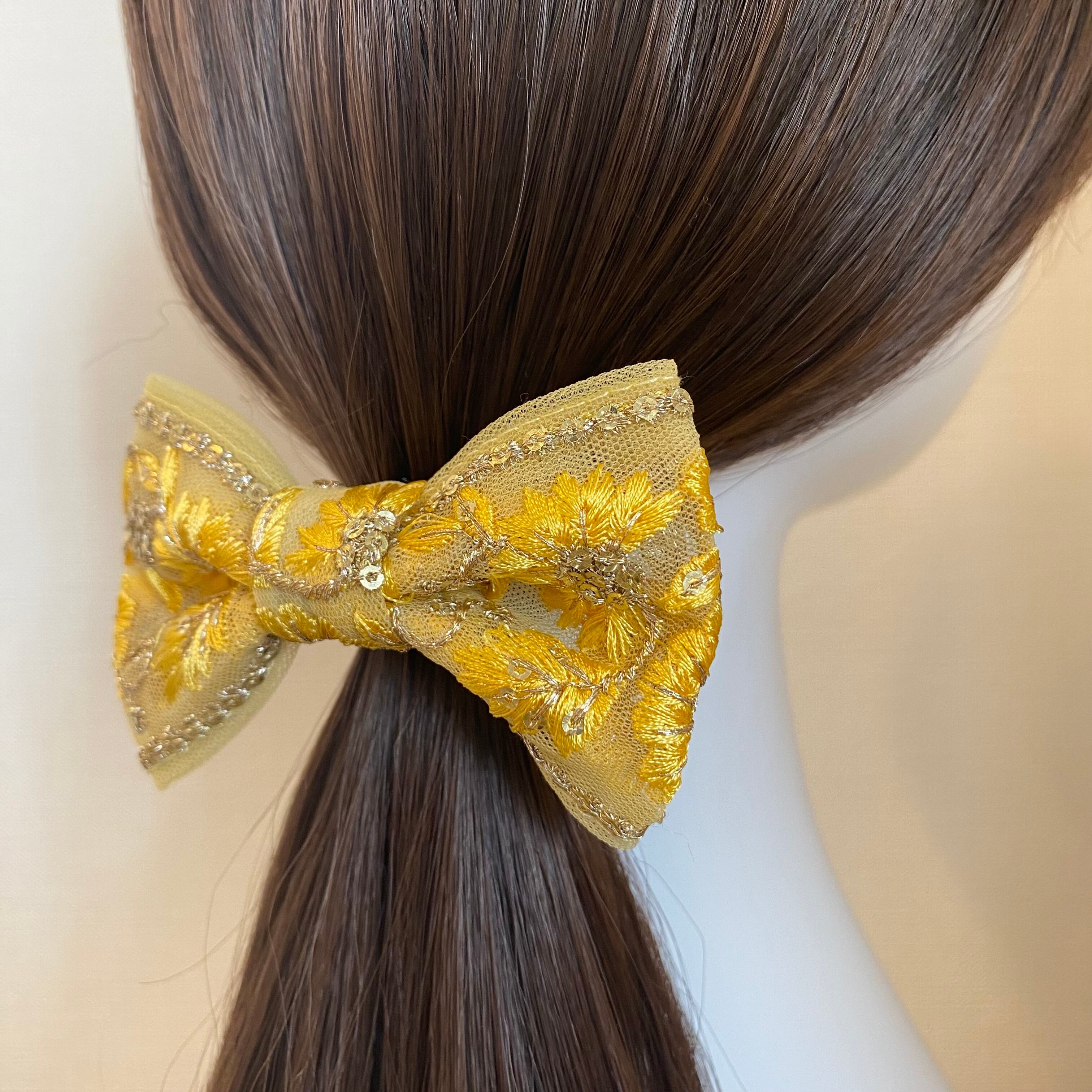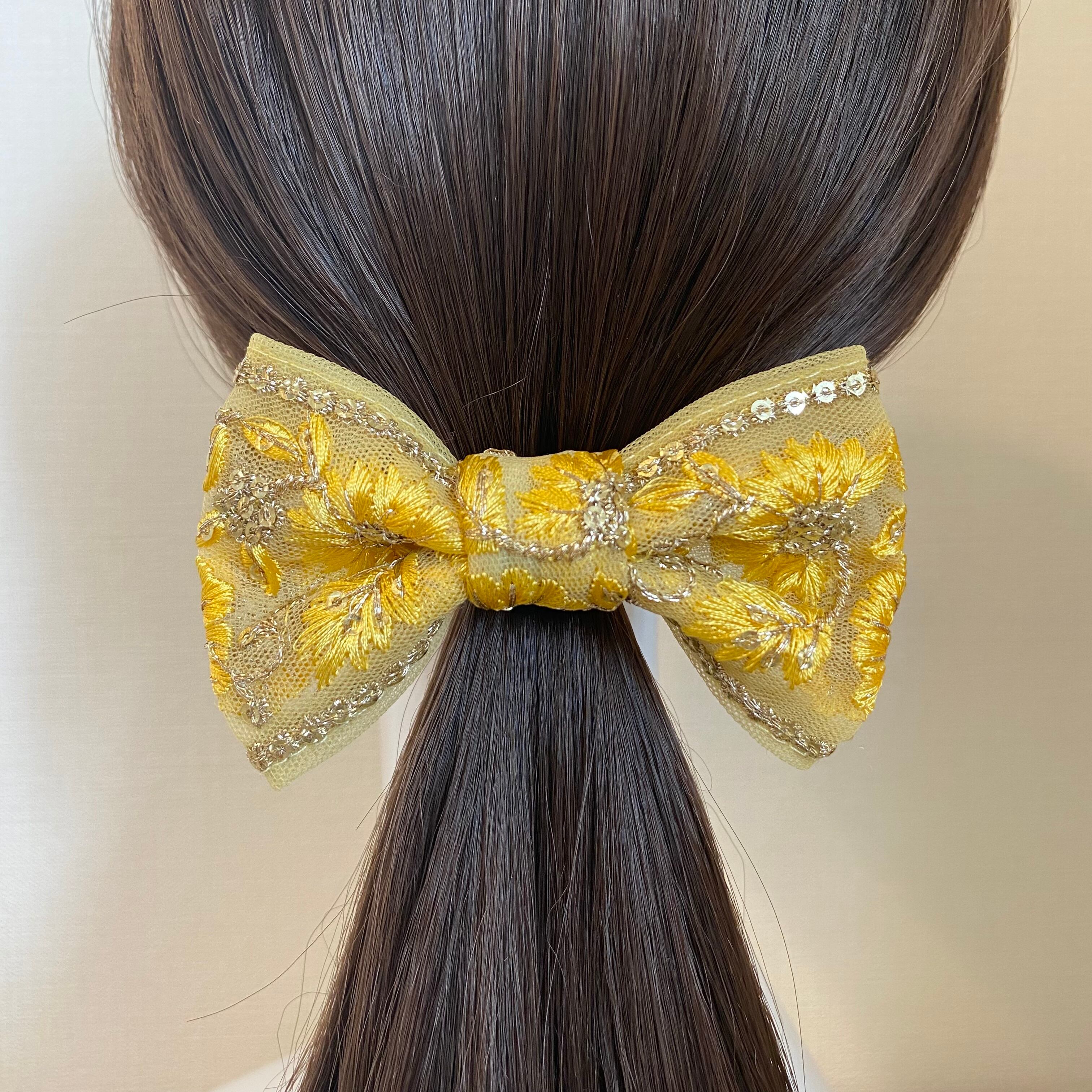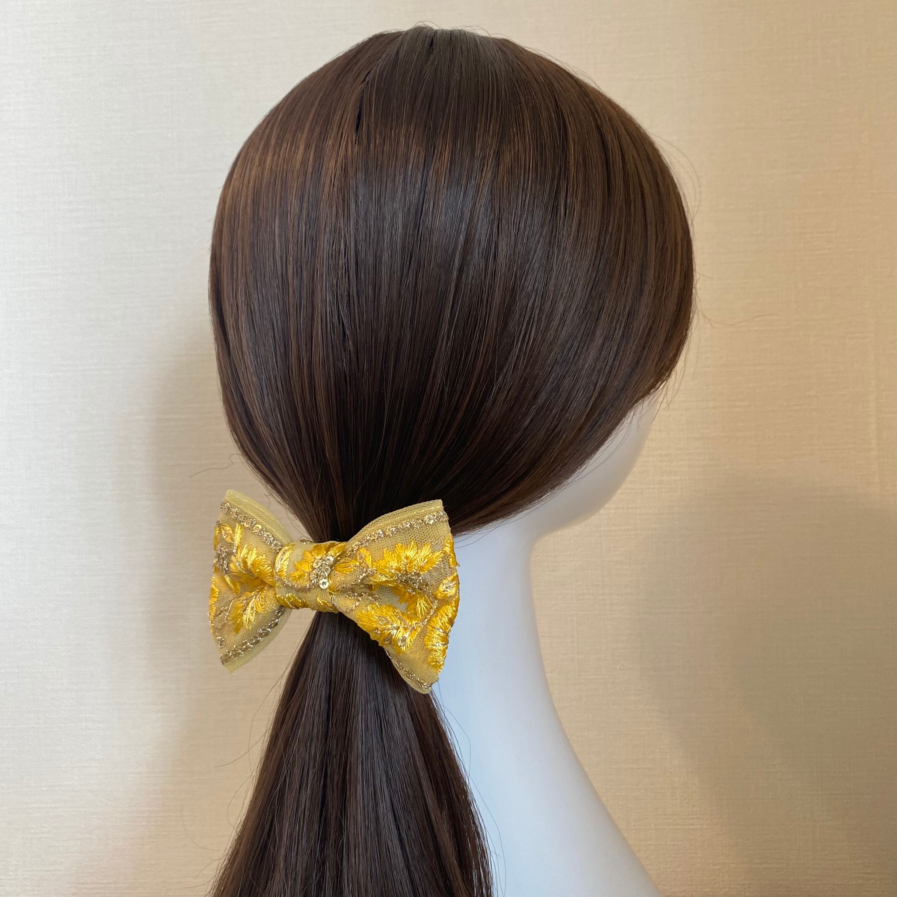 インド刺繍リボンを使ったリボン型のヘアアクセサリーです。