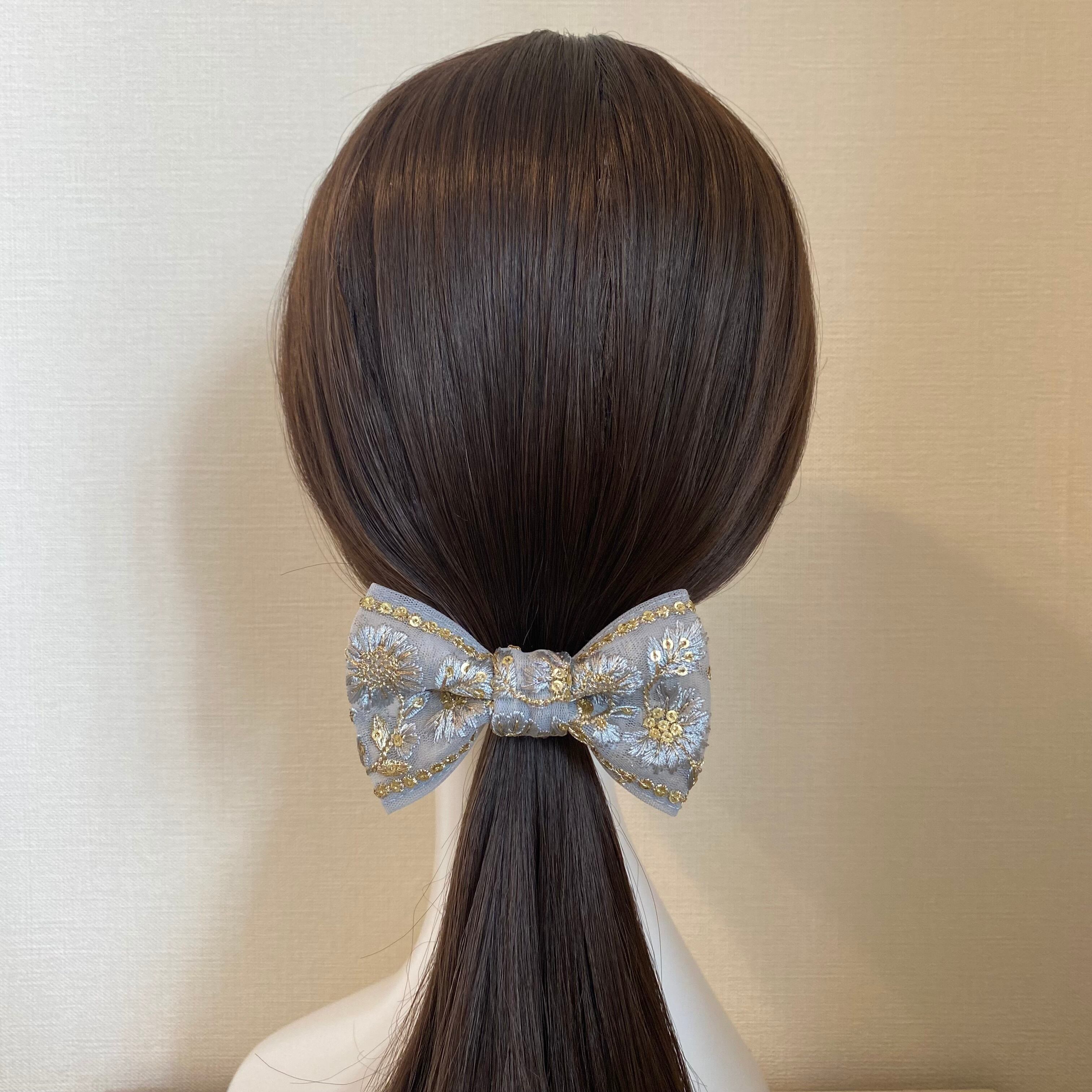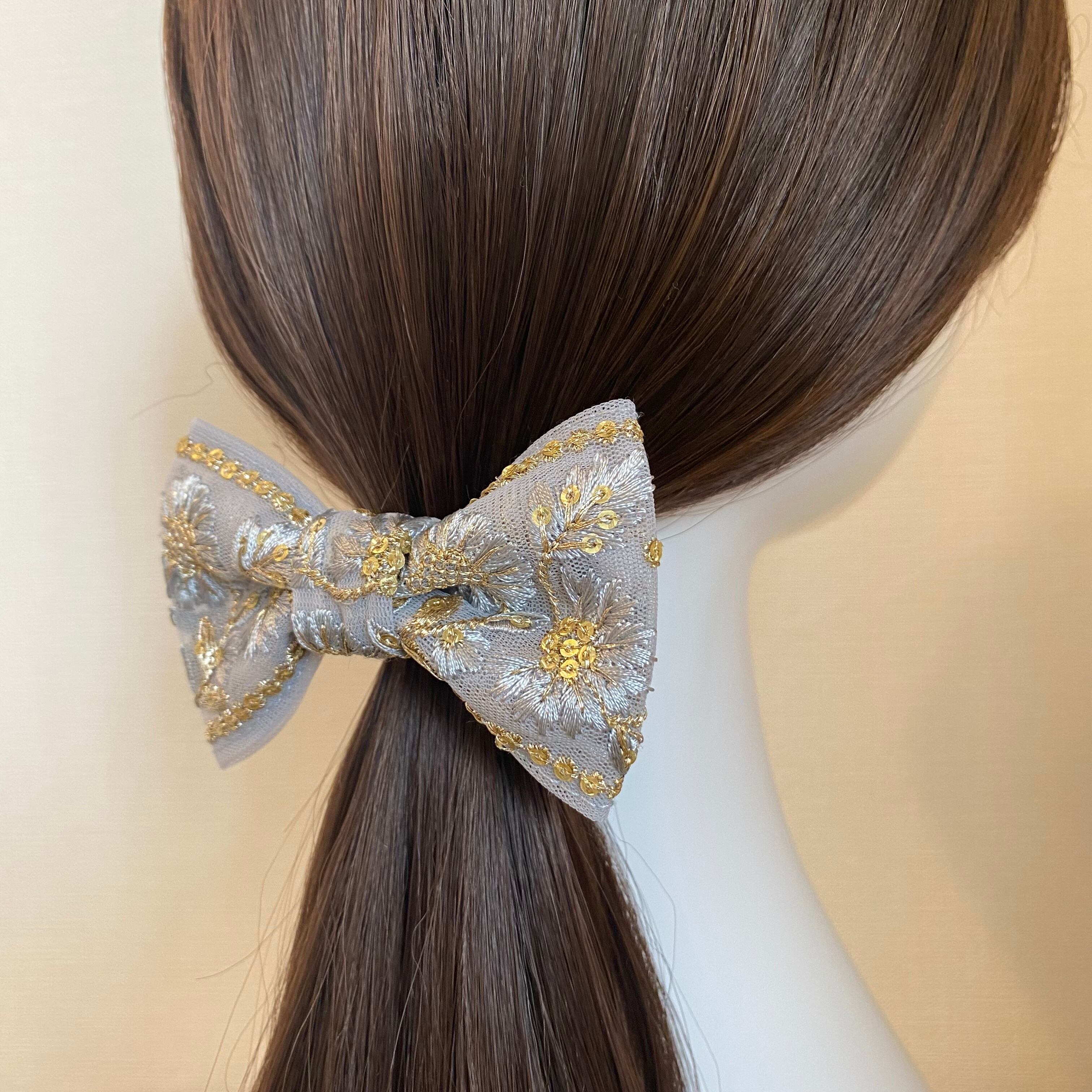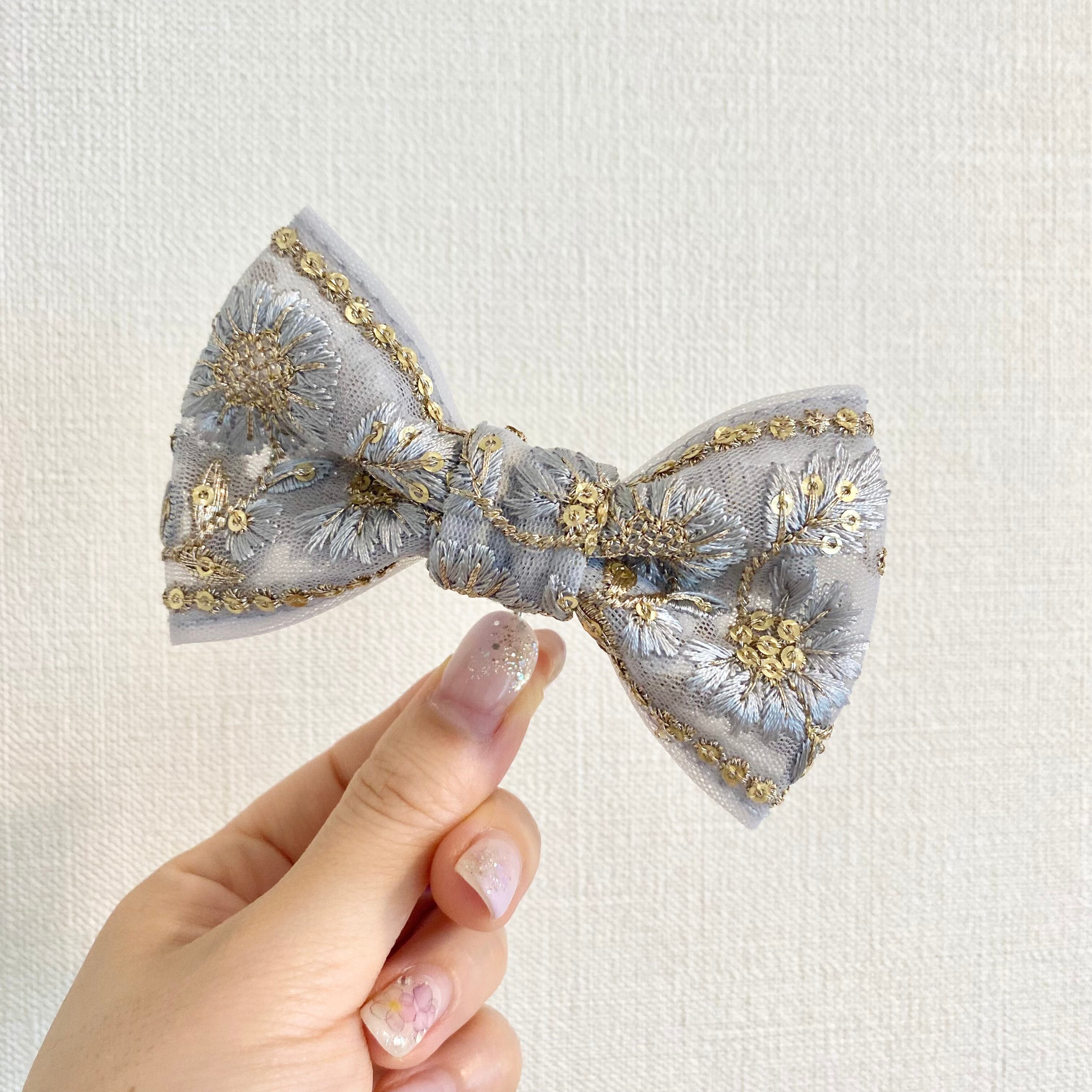 インド刺繍リボンを使ったリボン型のヘアアクセサリーです。