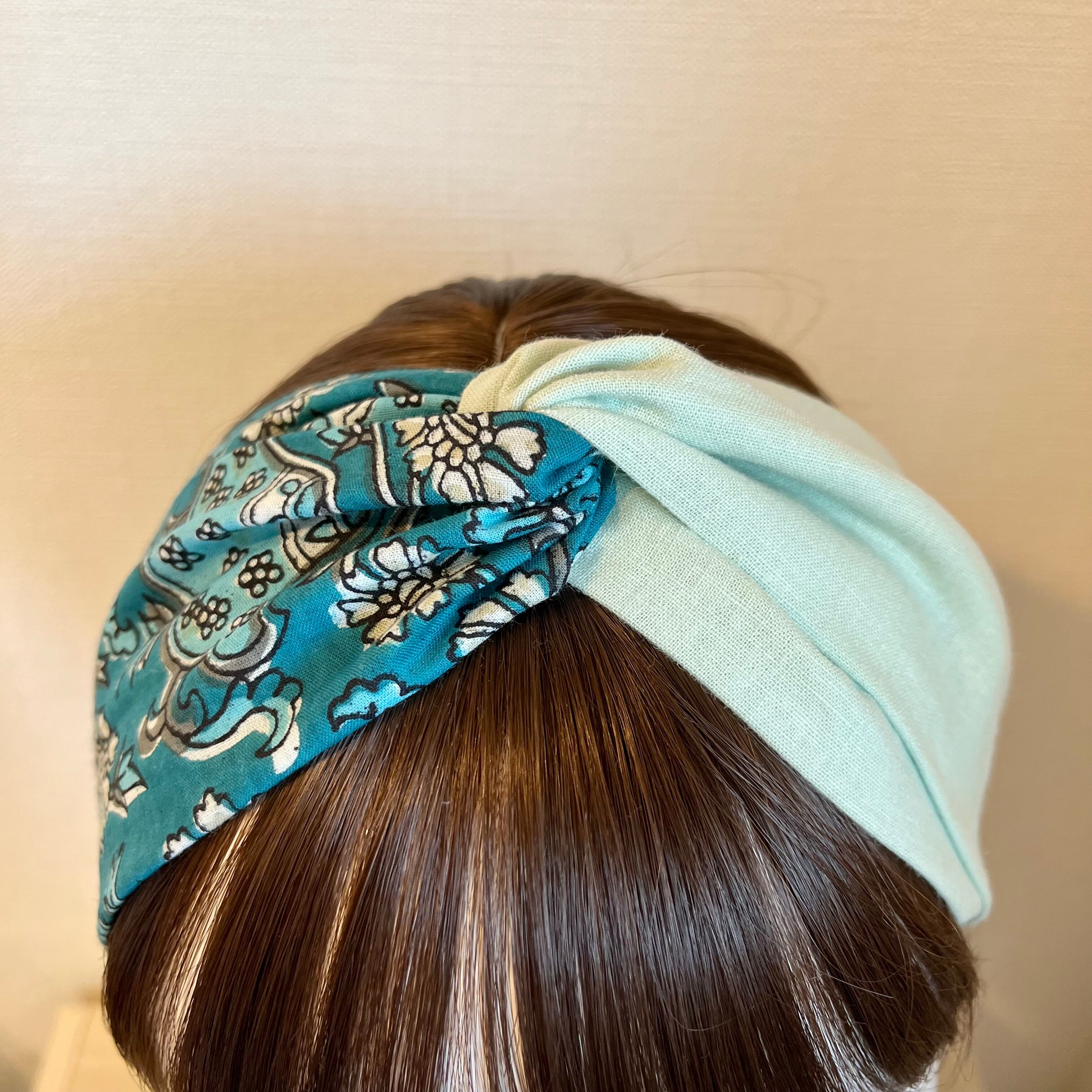 インドコットン生地を使ったヘアターバンです。 生地が少し薄めで、着け感軽めタイプです。 サイズ:フリーサイズ(頭囲約55cm)