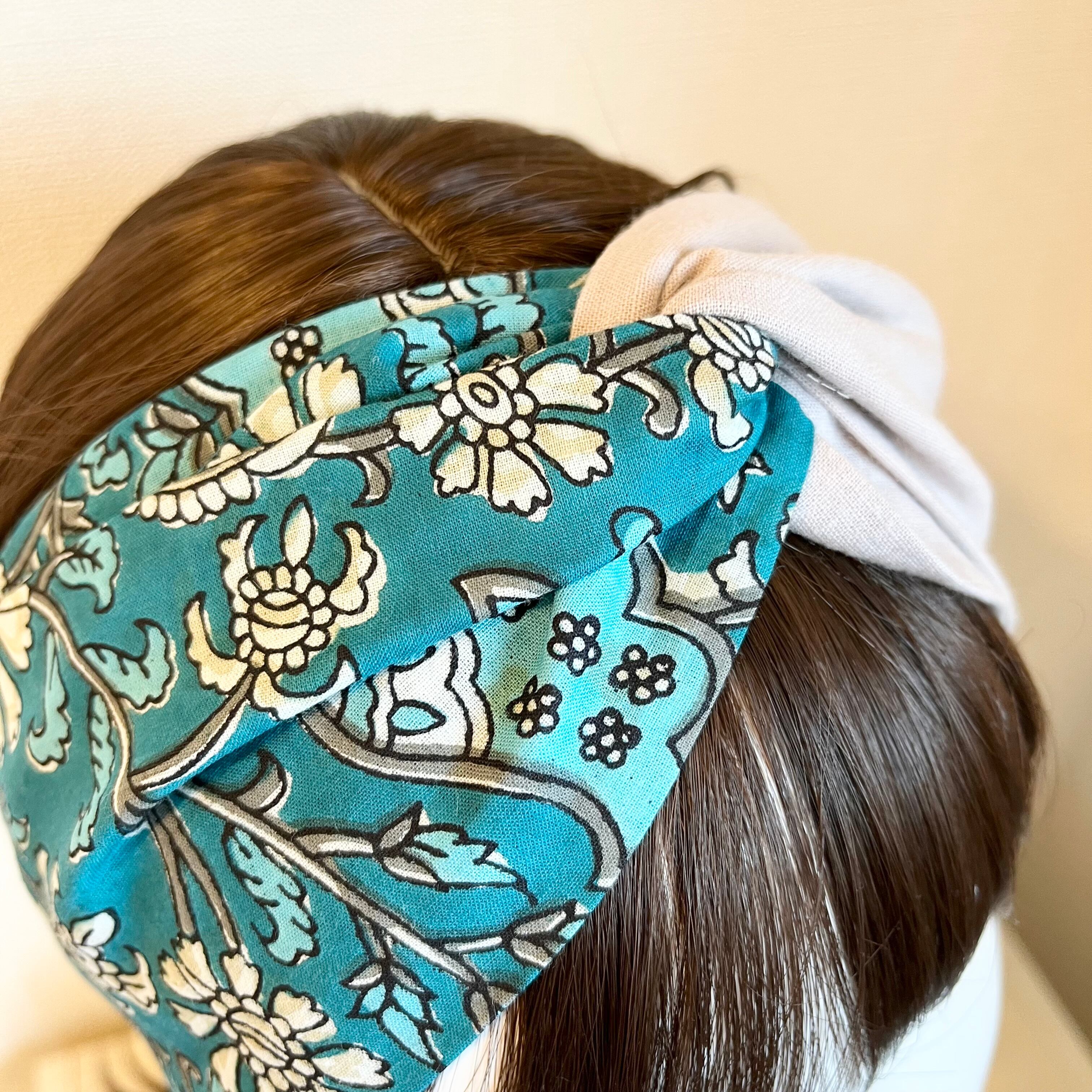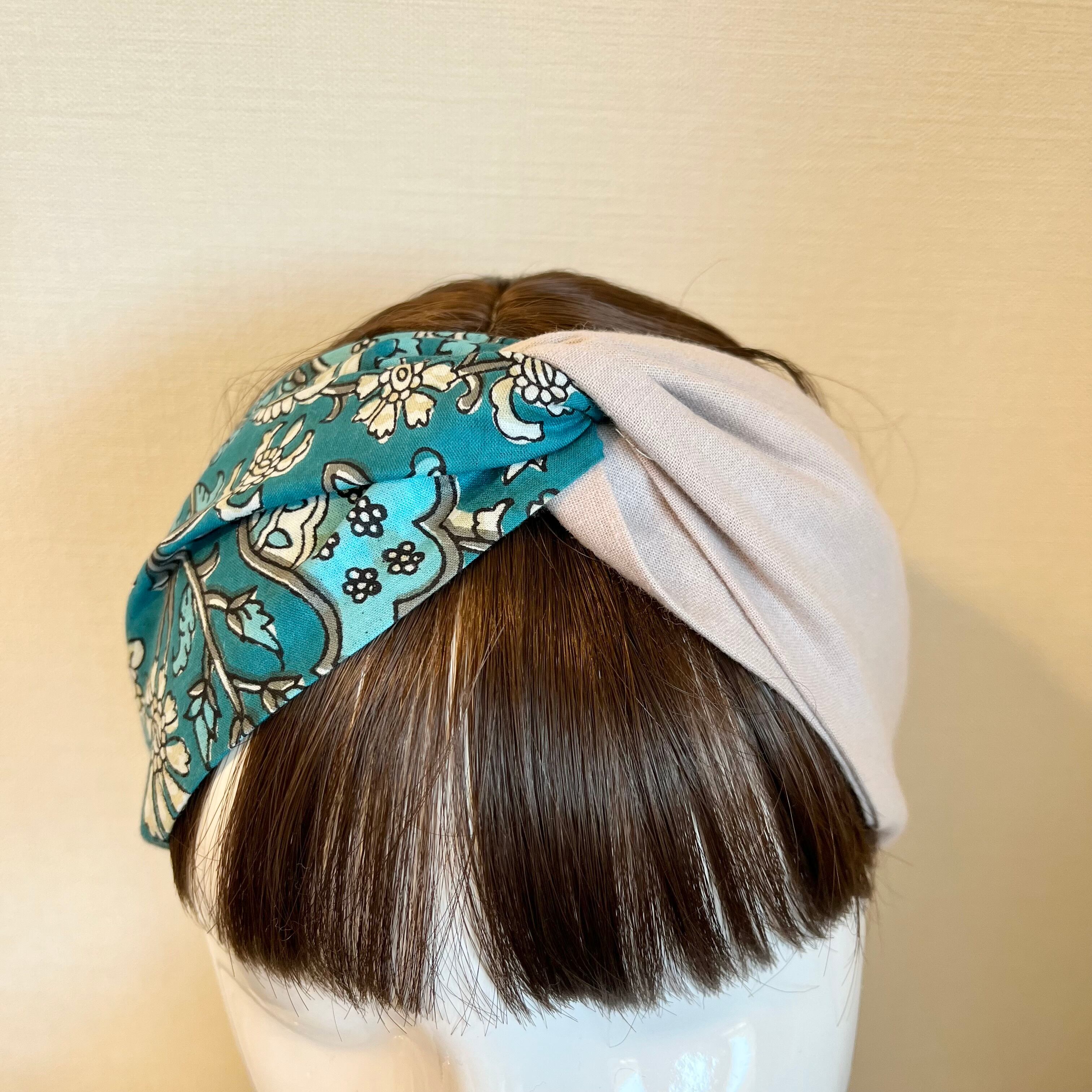 インドコットン生地を使ったヘアターバンです。 生地が少し薄めで、着け感軽めタイプです。 サイズ:フリーサイズ(頭囲約55cm)